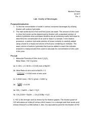 Read ACIDITY OF BEVERAGES PRE LAB ANSWERS Doc